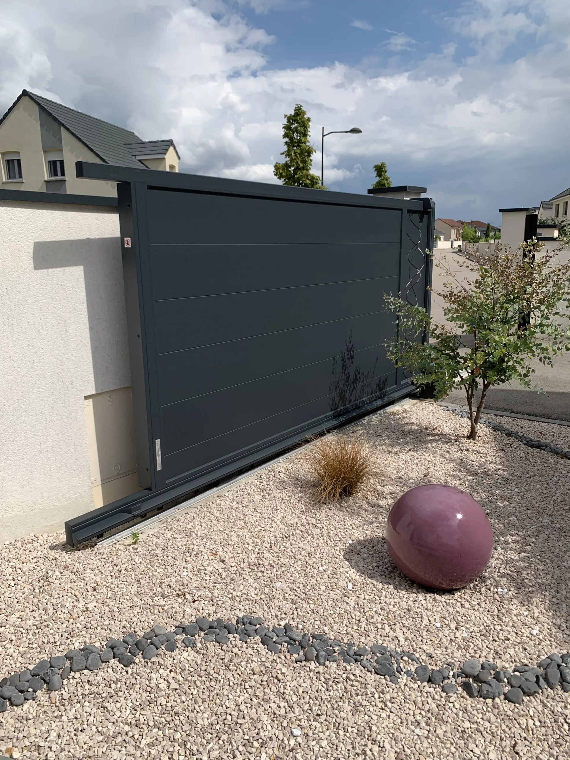 Le portail aluminium coulissant convient particulièrement aux terrains avec peu de recul ou situés en bord de voie publique. Contrairement au portail battant, il ne déborde pas sur l’extérieur et libère totalement l’espace de passage.