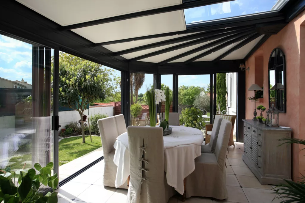 Comme un volet en façade, le soir vous fermez votre volet de toiture et gardez ainsi une température agréable dans votre véranda.